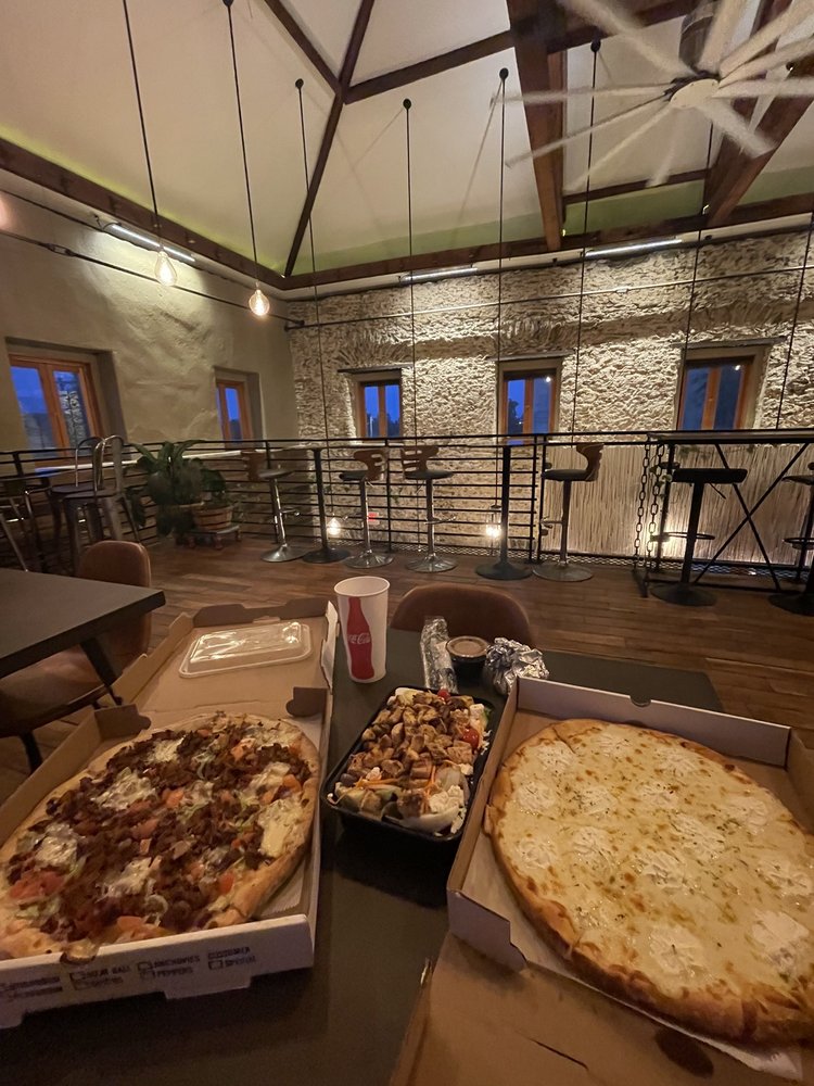 Founded Coffee & Pizza offers amenities such as Takeout, Delivery, Good for Kids, Outdoor Dining, Outdoor Parking, Parking Lot, Accepts Contactless Payments, Takeout, Delivery, Good for Kids, ensuring a comfortable and convenient experience for clients.